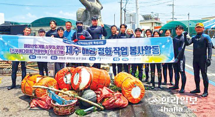 제주대학교와 제주관광대학교 학생들이 제주바다 정화에 힘을 보탰다. 제주대학교가 주최하고 제주관광대가 주관하는 '2023년 지역선도대학육성사업 해양산업개발 실무자 양성과정 프로그램'을 통해서다.