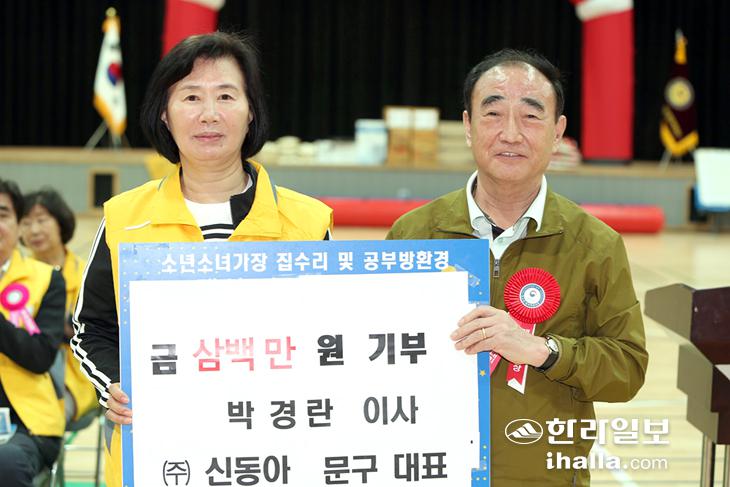 법무부 청소년범죄예방위원 제주지역협의회(회장 고영두) 박경란 이사는((주)신동아 문구 대표이사) 지난달 17일 제주대학교 체육관에서 제주도내의 청소년들의 공부방 환경개선사업에 써달라며 300만원을 기부했다.