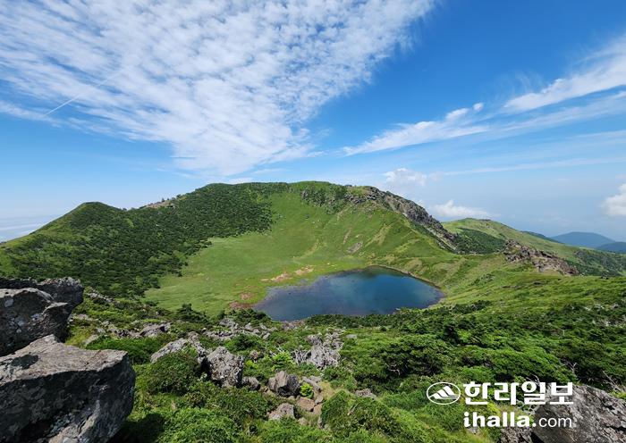 장마기간 만수위 보이며 절경 연출한 한라산 백록담