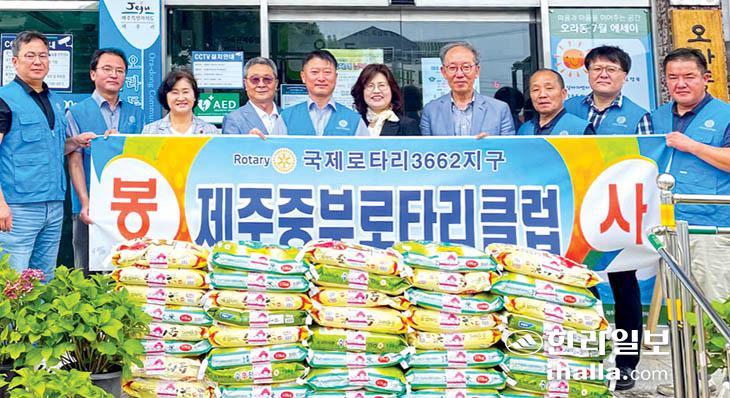 제주중부 로타리클럽(회장 김상헌)은 지난 5일 제주시 오라동 관내 취약 가구에 쌀 10㎏ 40포를 전달했다.