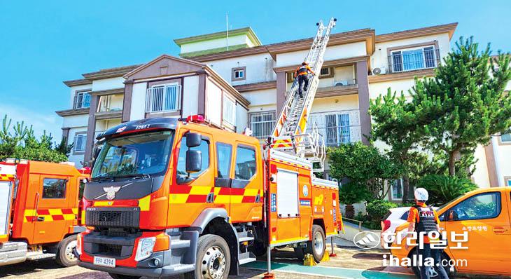 제주동부소방서(서장 김대홍)는 지난 12일 제주시 구좌읍 소재 피난약자시설인 소망요양원에서 화재 시 신속하고 효율적인 대응을 위한 맞춤형 합동 소방훈련을 실시했다.