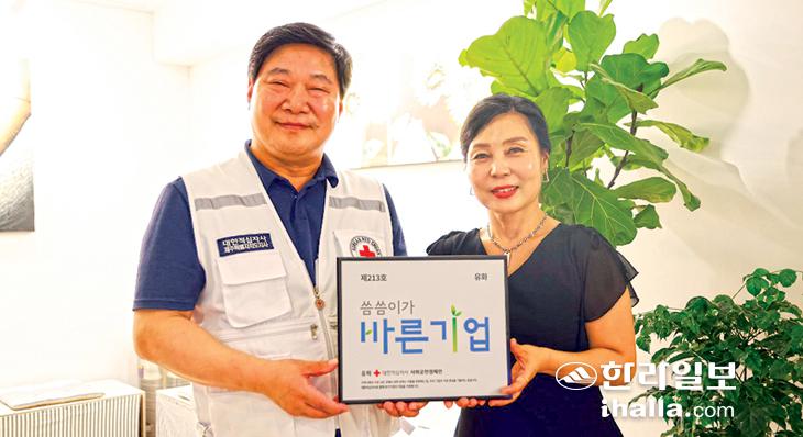 대한적십자사제주특별자치도지사(회장 정태근)는 '적십자사 씀씀이가 바른캠페인'에 유화 김선영 대표가 제주도 바른기업 213호로 가입했다고 지난 17일 밝혔다.
