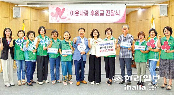 이번 성금은 오라동새마을부녀회 회원들이 매달 정기적으로 정성을 모아 마련했다.