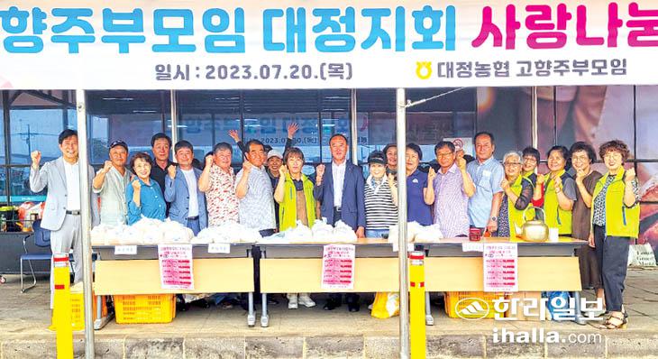 대정농협(조합장 강성방)과 고향주부모임(회장 김복실)은 지난 20일 대정농협 하나로마트 주말 장터에서 회원 20여명이 참여해 '사랑나눔 바자회'를 개최했다.