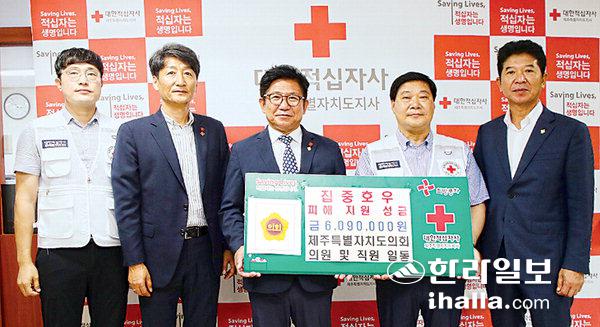 제주특별자치도의회(의장 김경학)는 최근 갑작스러운 집중호우로 인해 인명 및 재산 피해를 입은 중·남부 지역의 이재민을 위로하고 피해복구를 지원하기 위해 24일 대한적십자사 제주도지사를 방문해 성금 609만원을 전달했다.