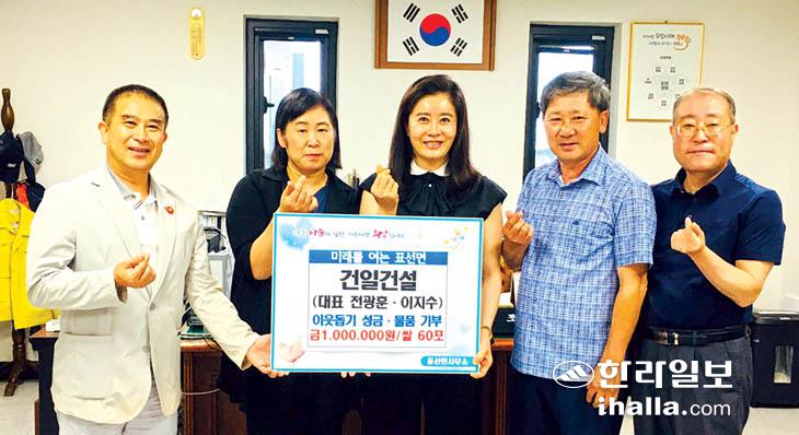 서귀포시 표선면 소재 신축 파라존아파트(회장 전광훈, 대표 이지수)는 지난 25일 표선면(면장 조성연) 지역의 소외된 이웃들을 위해 사용해달며 성금 100만원과 쌀 10㎏ 60포를 기탁했다. 이날 전달받은 성금과 쌀은 지역 내 저소득층에게 전달될 예정이다.