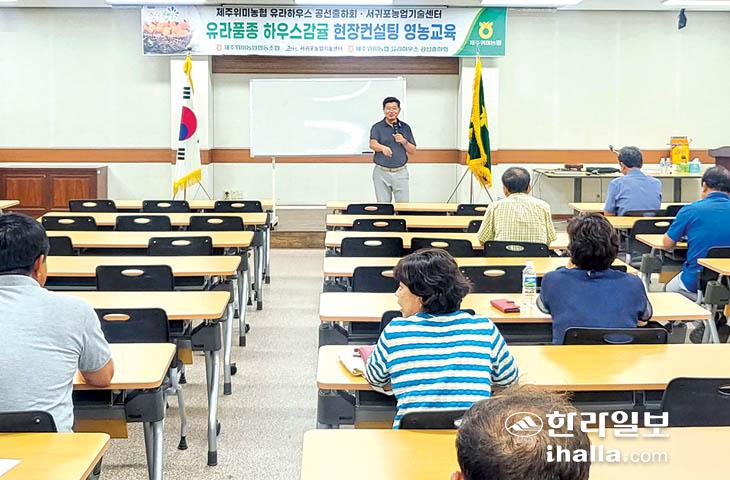 제주위미농협(조합장 현재근)은 지난 9일 위미유통회의실과 농가 포장에서 유라계열 하우스감귤 공선회원(회장 양성협) 50여명을 대상으로 현장 컨설팅을 진행했다.