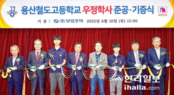 부영그룹이 10일 서울 용산구에 위치한 용산철도고등학교에 우정학사(기숙사)를 준공해 기증식을 가졌다.
