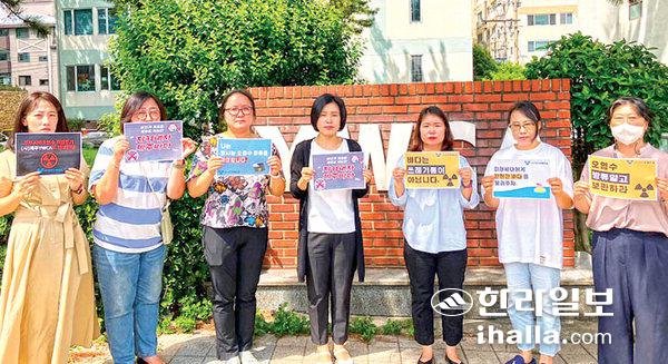 (사)제주YWCA(회장 고미연)는 지난 25일 제주YWCA회관에서 제주도민들과 함께하는 '후쿠시마 원전 오염수 방류 반대 릴레이 캠페인'을 진행했다. 이날 (사)제주YWCA는 '바다가 죽으면 제주도 죽는다. 지켜내자 제주 바다', '미래세대에게 안전한 바다를 물려주자', '여러분 식탁 위의 방사능 드셔도 괜찮으시겠습니까?' 등의 문구가 적힌 피켓을 들고 오염수 해양 투기를 반대하는 캠페인을 펼쳤다. 앞서 (사)서귀포YWCA(회장 고맹수)도 지난 24일 서귀포YWCA회관에서 후쿠시마 원전 오염수 방류에 따른 규탄과 반대 캠페인을 벌였다.
