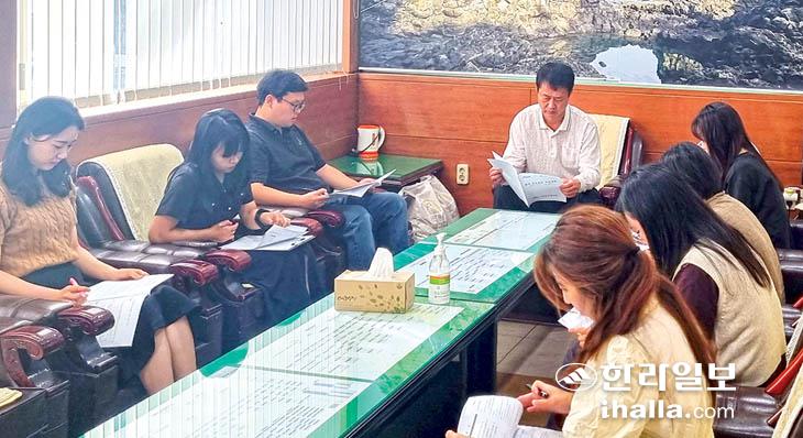 서귀포시 천지동(동장 전익현)은 지난 1일 주민센터 동민의방에서 직원들이 참여한 가운데 부서 친절응대 능력 향상과 청렴문화 확산을 위해 타지역 및 기관들의 친절·청렴 사례에 대한 공유 간담회를 개최했다.
