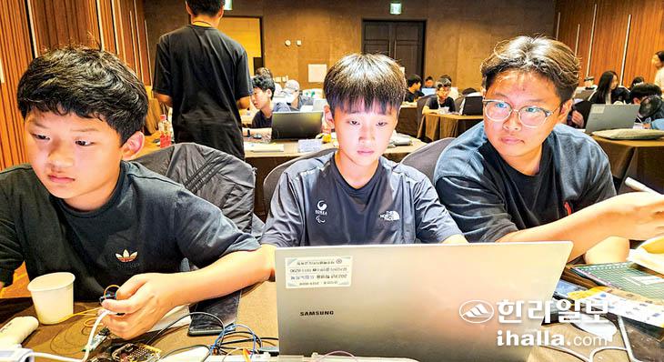 제주도교육청은 제주교육정보화연구회(회장 부용호)와 공동 주관으로 지난 2~3일 그라벨 호텔에서 제7회 제주 SW·AI 주니어해커톤대회를 개최했다. 이번 대회는 '이상 기후 현상으로 발생할 수 있는 주변의 문제를 예방하거나 해결할 수 있는 프로그램 개발'을 주제로 마련됐다.