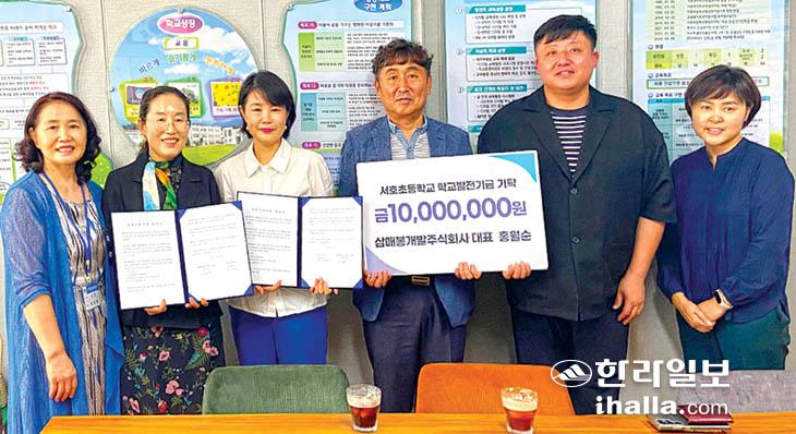 서호초등학교(교장 양정윤)는 지난 4일 삼매봉개발주식회사(대표 홍월순)와 장학지원사업 협약을 체결해 학교발전기금으로 1000만 원을 기탁받았다. 이번 협약은 장학금 지원, 교육 환경 개선 등을 내용으로 이뤄졌다.