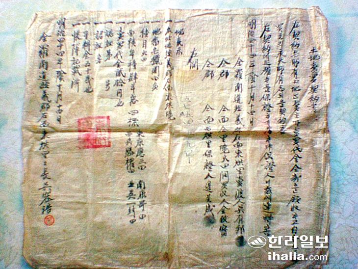 이 뿐이 아니다. 화전을 하던 경작지도 매매가 이뤄졌다는 사실이 확인됐다. 제주에서의 화전은 산간지대나 중산간 지대에서 주로 이뤄졌다. 토질이 좋을 리 없었다. 그런데 이러한 화전이 매매를 통해 거래됐다는 사실은 매우 흥미롭다. 취재팀은 무주공산으로 여겨졌던 화전도 매매가 이뤄진 사실을 보여주는 문서를 처음으로 확인했다.
