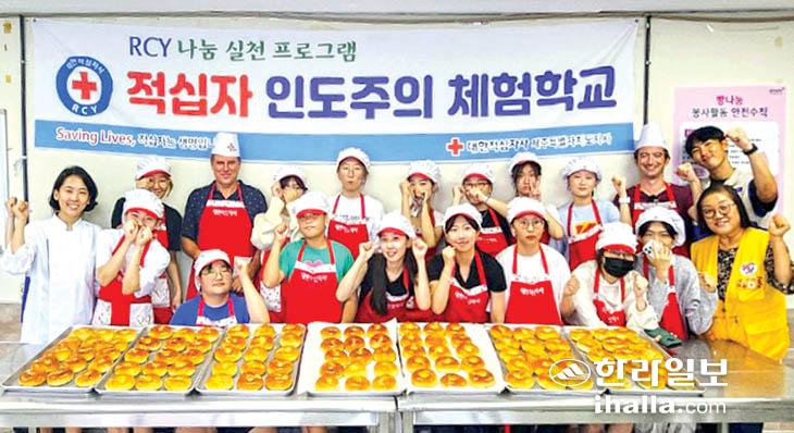 이날 RCY 단원들은 이웃에 사랑을 전하기 위해 호두단팥빵 150개를 만들어 남사경로당에 전달했으며, 인도주의 인성교육을 이수했다.