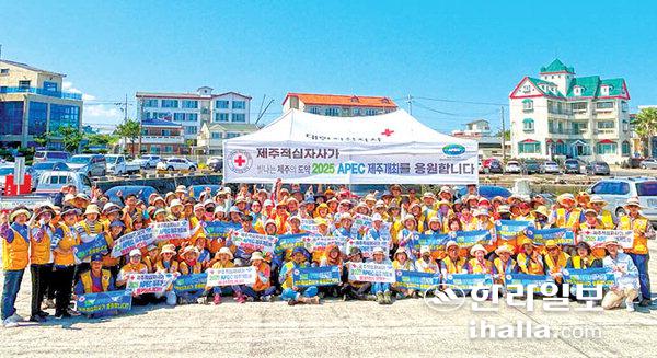 대한적십자사제주특별자치도지사(회장 정태근)는 6일 연대포구에서 오영훈 도지사와 대한적십자사제주지사 봉사원 250명이 참석한 가운데 2025 APEC 정상회의 제주 유치 기원 결의대회 및 '곱닥한 제주 바당 가꾸기'를 실시했다.
