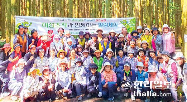 제주시농협(조합장 고봉주) 여성조직은 지난 6일 회원 60여 명과 제주시농협 관계자 등이 참여한 가운데 한라산둘레길(이사장 강만생) 사려니숲길 일대에서 숲길걷기와 요가 및 스포츠테이핑 등 여성조직과 함께하는 힐링체험 행사를 개최했다.