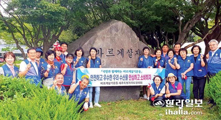 바르게살기운동제주특별자치도협의회(회장 좌중언)는 지난 1일 임원 20여명이 참여해 종합운동장 일대에서 '안전하고 우수한 우리 수산물 안심하고 소비하자' 캠페인을 전개했다.