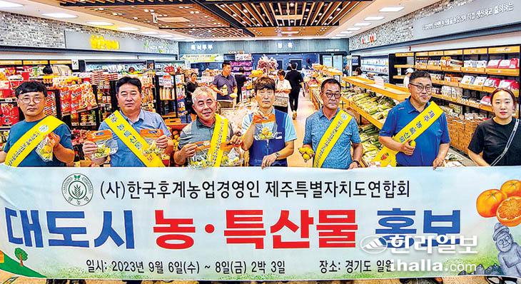 (사)한국후계농업경영인제주특별자치도연합회(회장 안재홍)는 지난 6~8일 사흘간 경기도 김포 신도시, 고양시, 파주시 등에서 올해산 하우스감귤 등 제주 농·특산물의 맛과 우수성을 알리는 '2023 대도시 농·특산물 홍보 한마당'을 진행했다.