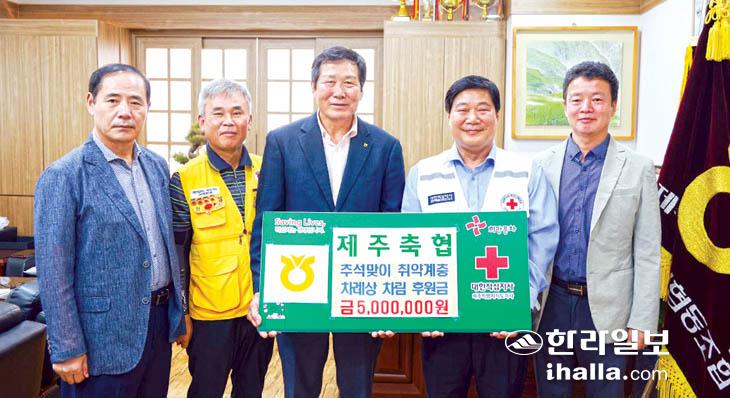 제주축산농협(조합장 천창수)은 지난 7일 제주축협 조합장실에서 대한적십자사제주특별자치도지사(회장 정태근)에 추석맞이 취약계층 차례상 장보기 후원금 500만원을 전달했다.