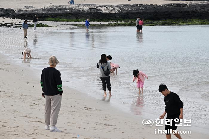[한라일보] 초겨울인데도 따뜻한 남서풍이 유입되면서 봄 날씨를 보인 9일 제주시 가벼운 옷차림으로 협재해수욕장을 찾은 관광객들이 포근한 제주의 주말을 만끽하고 있다.