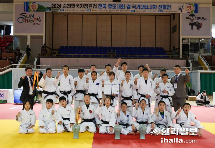 제주 유도 선수들이 시상식이 끝난 후 기념촬영을 하고 있다. 제주특별자치도체육회 제공