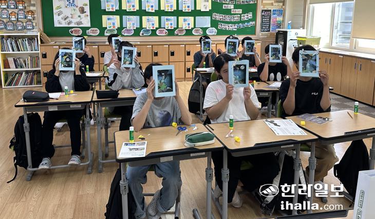 [한라일보] 가을이라기엔 아직 더운 날씨인 지난 16일 한라일보 주관으로 진행되는 '2024 찾아가는 독도 해녀 교실'이 6회차를 맞아 구좌중앙초등학교(교장 장은영) 6학년 교실에서 진행됐다.