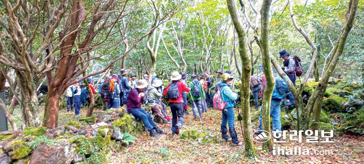 지난달 19일 진행된 '2024 제주섬 글로벌 에코투어' 12차 행사에서 참가자들이 4·3수악주둔소를 둘러보며 휴식을 취하고 있다. 내성과 외성 이중으로 거대하게 구축된 4·3수악주둔소는 4·3유적지 중 처음으로 국가지정 등록문화재로 지정됐다. 오승국 시인