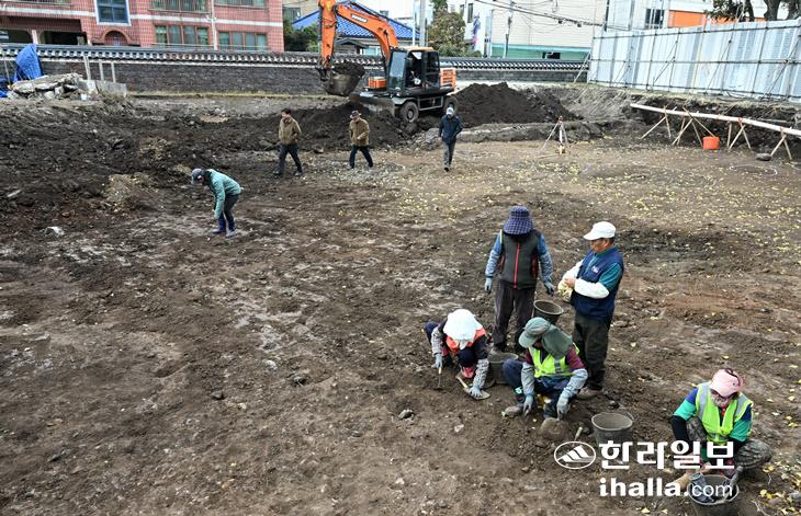제주도유산본부가 제주목 관아 관리센터 신축에 앞서 매장문화재 시굴조사를 벌이는 모습. 탐라시대 수혈유구와 조선시대 우물터 등이 발견되고 있다. 한라일보DB