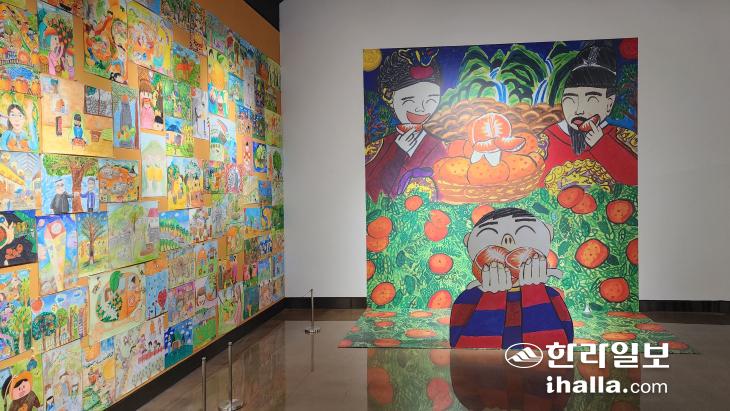 감귤박물관 2층 기획전시실에선 '감귤에 담긴 글과 그림 이야기' 전시가 열리고 있다. 지난 10여 년간 감귤박물관 어린이 문예대회를 빛낸 수상작을 한자리에서 만날 수 있는 자리다. 역대 공모전 최우수상 18개 작품을 비롯해 수상작 200여 점이 전시됐다.