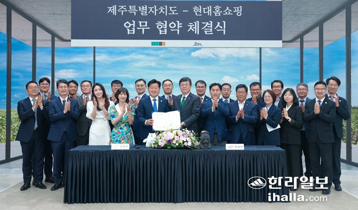 19일 제주도와 현대홈쇼핑이 제주 농수축산물·가공품 판매와 관광 활성화를 위한 업무 협약을 체결했다. 제주도 제공