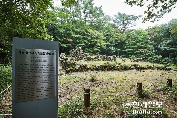 [한라일보] 제주특별자치도 기념물인 서귀포시 도순동 '무오법정사항일운동발상지'. "1918년 10월 일어난 도내 최대의 항일 항쟁이 계획되고 시작된 장소"라는 가치를 인정받아 2003년 제주도 지정 문화유산이 됐다.