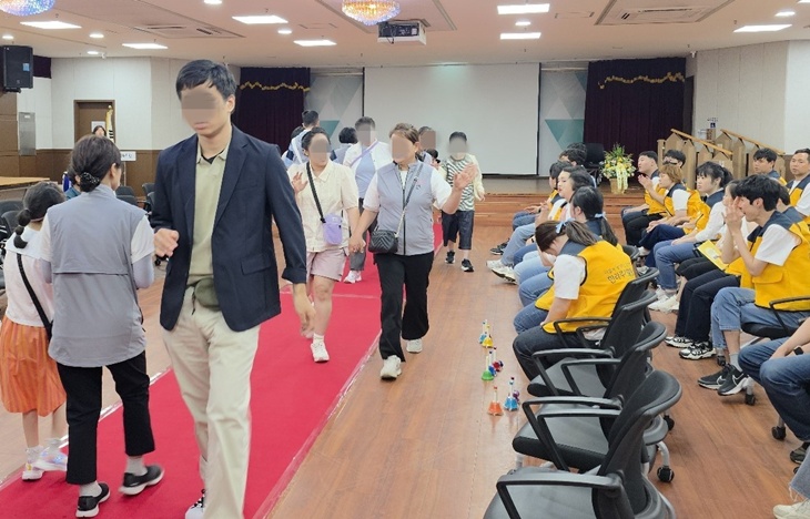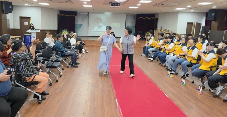 지난 20일 탐라장애인종합복지관에서 열린 '천사나래 멋쟁이 패션쇼'에서 참가자들이 당당하게 레트 카펫 위를 모델처럼 걷고 있다. 천사나래주간활동센터 제공