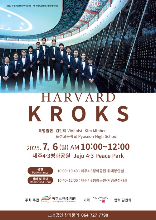 제주4·3평화재단(이사장 김종민)은 다음 달 6일 오전 10시 제주4·3평화공원 위패봉안실에서 하버드대 아카펠라 그룹 '크로코딜로스' 공연을 개최한다고 26일 밝혔다.