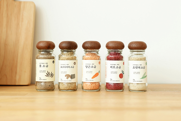오마이솔트랩의 정체성을 가장 잘 보여주는 '제주 기능성 소금 9종'은 감귤, 당근, 비트, 표고버섯, 다시마, 조릿대, 톳 등 제주의 계절 원물을 소금과 함께 조화시켜 만들었다. 단순한 조미료를 넘어 '제주의 맛과 향, 색깔을 간직한 기능성 소금'으로 완성해냈다.