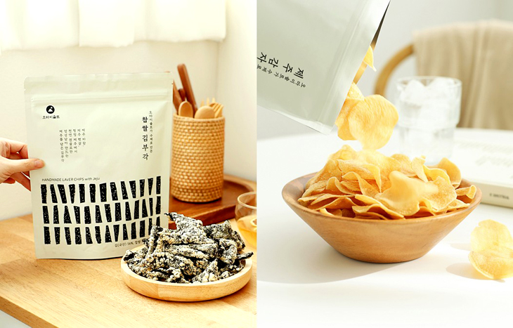 김에 찹쌀풀을 정성스레 입힌 김부각과 제주 감자를 얇게 슬라이스한 감자부각은 한국비건인증원으로부터 인증 받은 100% 식물성 스낵이다. 기름 흡수율이 낮아 담백하고 부담 없이 즐길 수 있는 간식으로, 최근 건강한 간식을 찾는 젊은 층과 외국인 관광객들 사이에서 좋은 반응을 얻고 있다.