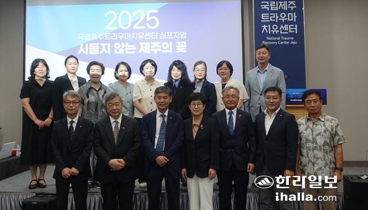 3일 국립제주트라우마치유센터 심포지엄 발표자와 토론자 등이 기념 촬영을 하고 있다. 진선희기자