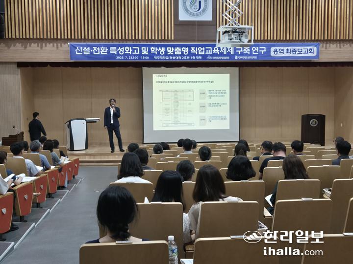 제주특별자치도교육청은 23일 제주대학교 경상대학 중강당에서 '신설·전환 특성화고 및 학생 맞춤형 직업교육체제 구축 연구용역' 최종보고회를 개최했다. 해당 연구는 제주대학교 산학협력단이 수행했으며, 지역 산업구조, 인재 수요, 학생·학부모 선호도 등을 반영해 진행됐다.