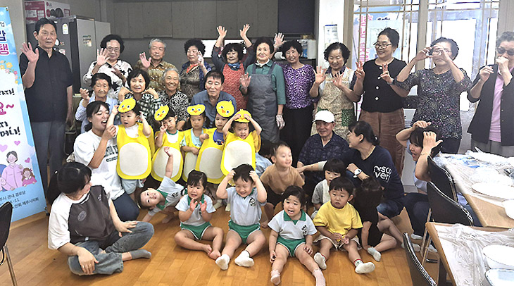 (사)대한노인회 제주시지회(지회장 문준식)는 지난 24일 동광경로당(회장 김희철)에서 동광어린이집(원장 오명심), 하하어린이집(원장 정숙미), 꼬마스쿨어린이집(원장 고승혜) 소규모 운영 3개소 어린이집과 함께 경로당 세대통합 프로그램 지원사업을 운영했다.