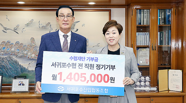 서귀포수산업협동조합(조합장 김미자)은 지난 22일 수협중앙회(회장 노동진)를 방문해 매월 140만5000원씩 수협재단에 정기 기부한다고 밝혔다.