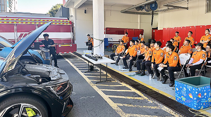 교육은 이론과 실습이 병행됐으며 주요 내용은 ▷친환경차의 구조적 특성과 식별 방법 ▷고전압 안전장치에 대한 이해와 응급조치 요령 ▷비상상황 시 고전압 전원을 안전하게 차단하는 실습 등으로 구성됐다.