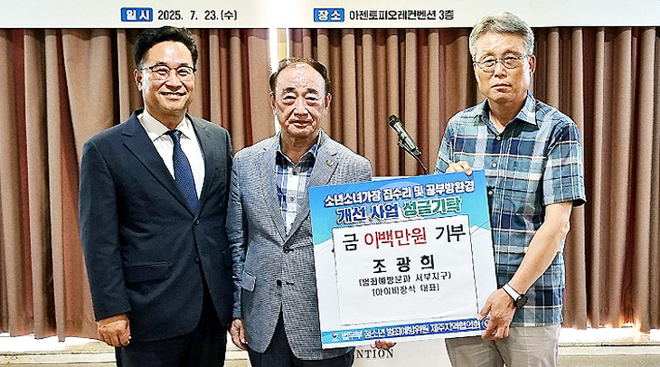 법무부 청소년범죄예방위원 제주지역협의회(회장 고영두) 조광희(아이비 장식 대표) 위원은 지난 23일 진행된 검사장과의 간담회 자리에서 제주도 내 취약계층 청소년 대상 공부방환경 개선사업 지원금 200만원을 전달했다.