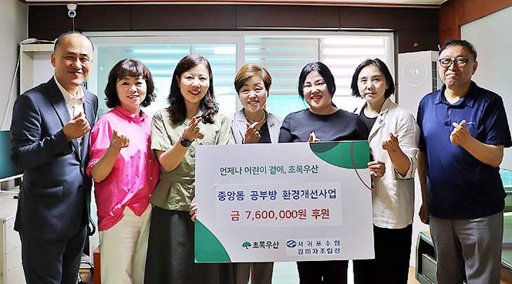 서귀포수협 김미자 조합장은 지난 28일 초록우산 제주지역본부(본부장 김희석)와 서귀포시 중앙동 아동 가정에서 공부방 후원금 전달식을 진행했다. 이날 아동 가정에 약 760만원 상당의 물품 및 공사비가 지원됐다.