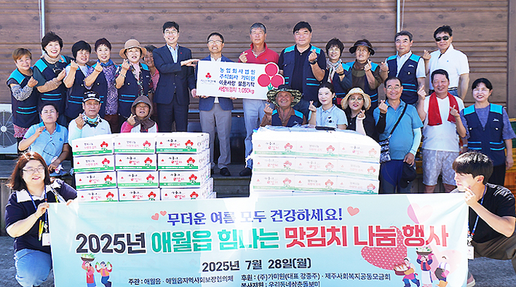 이날 전달된 김치는 애월읍사무소와 사회복지시설과 단체를 통해 지역 내 어려운 이웃들에게 전달됐다.