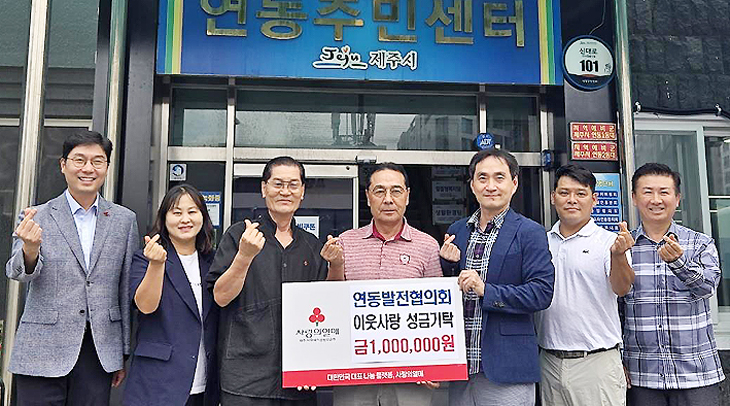 제주시 연동발전협의회(회장 현창익)는 지난 1일 연동주민센터(동장 문성조)를 방문해 지역 내 어려운 이웃을 돕기 위한 성금 100만원을 사회복지공동모금회를 통해 기탁했다.
