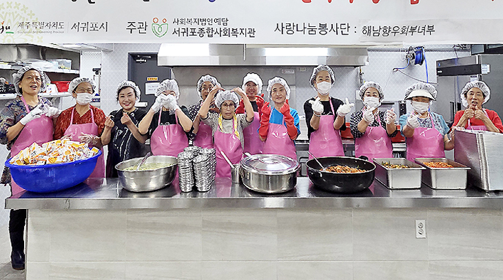 서귀포시해남향우회부녀부(회장 김길란)는 6일 서귀포종합사회복지관 경로식당에서 어르신 300여 명을 대상으로 급식 봉사활동을 진행했다.