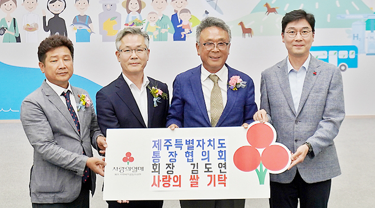 제주도통장협의회 김도연 회장은 지난 1일 제주도청 탐라홀에서 사랑의 쌀 520㎏을 제주사회복지공동모금회(회장 강지언)에 기탁했다.