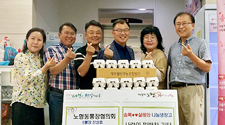 제주시 노형동통장협의회(회장 현상진) 5통장(진성효), 41통장(고윤희), 51통장(김미화)은 지난달 31일 노형동주민센터(동장 고광수) 1층에 설치된 '솜뽁 살레와 나눔냉장고'에 총 1000개의 계란을 기부했다.