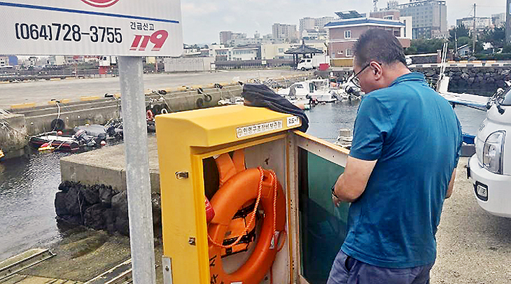 제주시 외도동(동장 박기완)은 최근 연대포구 일대에서 여름철 물놀이 안전사고 예방을 위한 현장점검을 실시했다. 박기완 동장은 직접 현장을 방문해 수상 인명구조 장비 설치 상태와 관리 실태를 확인했다.