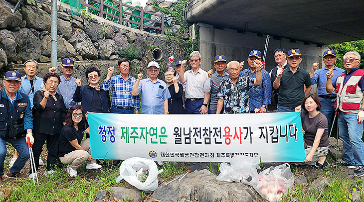 대한민국월남전참전자회 제주도지부(지부장 양형석)는 7일 지부임원과 유족회원 등 23명이 참여한 가운데 서귀포 강정동 소재 악근천에서 쓰레기 줍기에 힘썼다.
