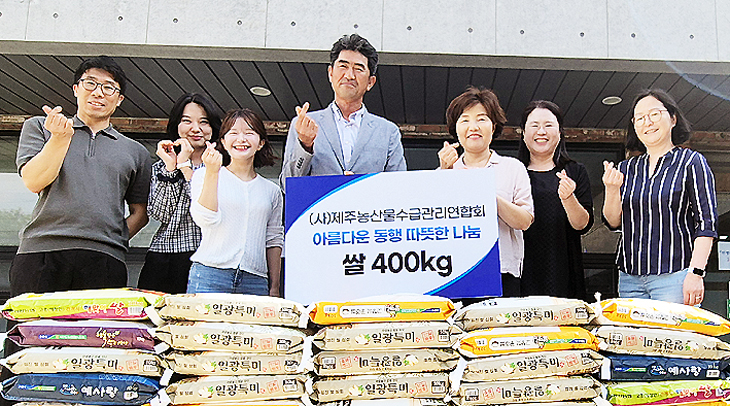 (사)제주농산물수급관리연합회(회장 강동만)는 지난달 31일 개최한 제2기 출범식을 통해 받은 쌀 화환을 제주시 삼도1동 주민센터에 기부했다.